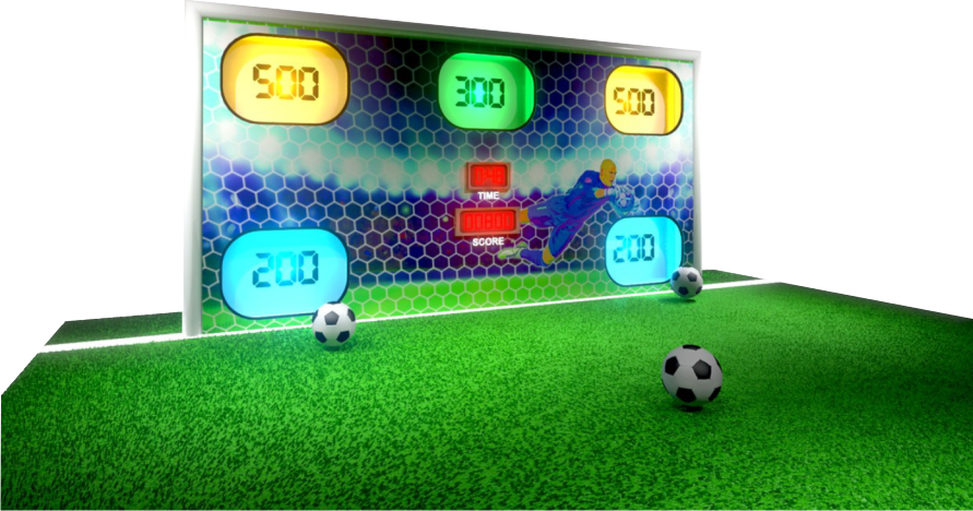 Wooden frame with metallic structures, and plywood materials. Includes sound and light effects, scoreboard.